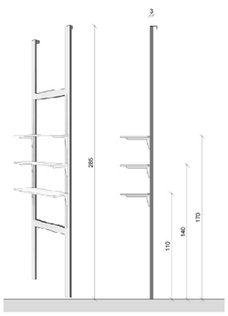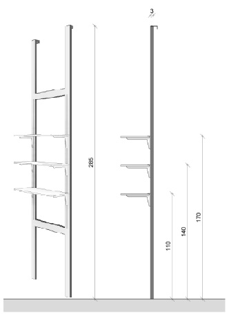 Struttura a cremagliera esterna cm 90x285H con 3 mensole cm 90x30 posizionate a cm 110, 140 e 170 da terra (carico massimo per mensola 5 kg)