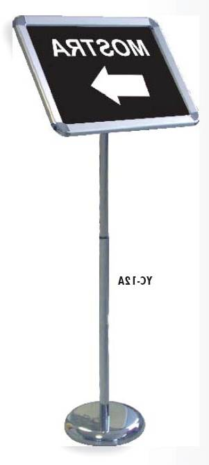 Struttura bifacciale con asta verticale fissa alta 84cm., cornici con meccanismo clic-clac. Formato A3 con possibilità di inserire immagini 30x42h e 42x30h. Foglio di protezione in PVC antiriflesso